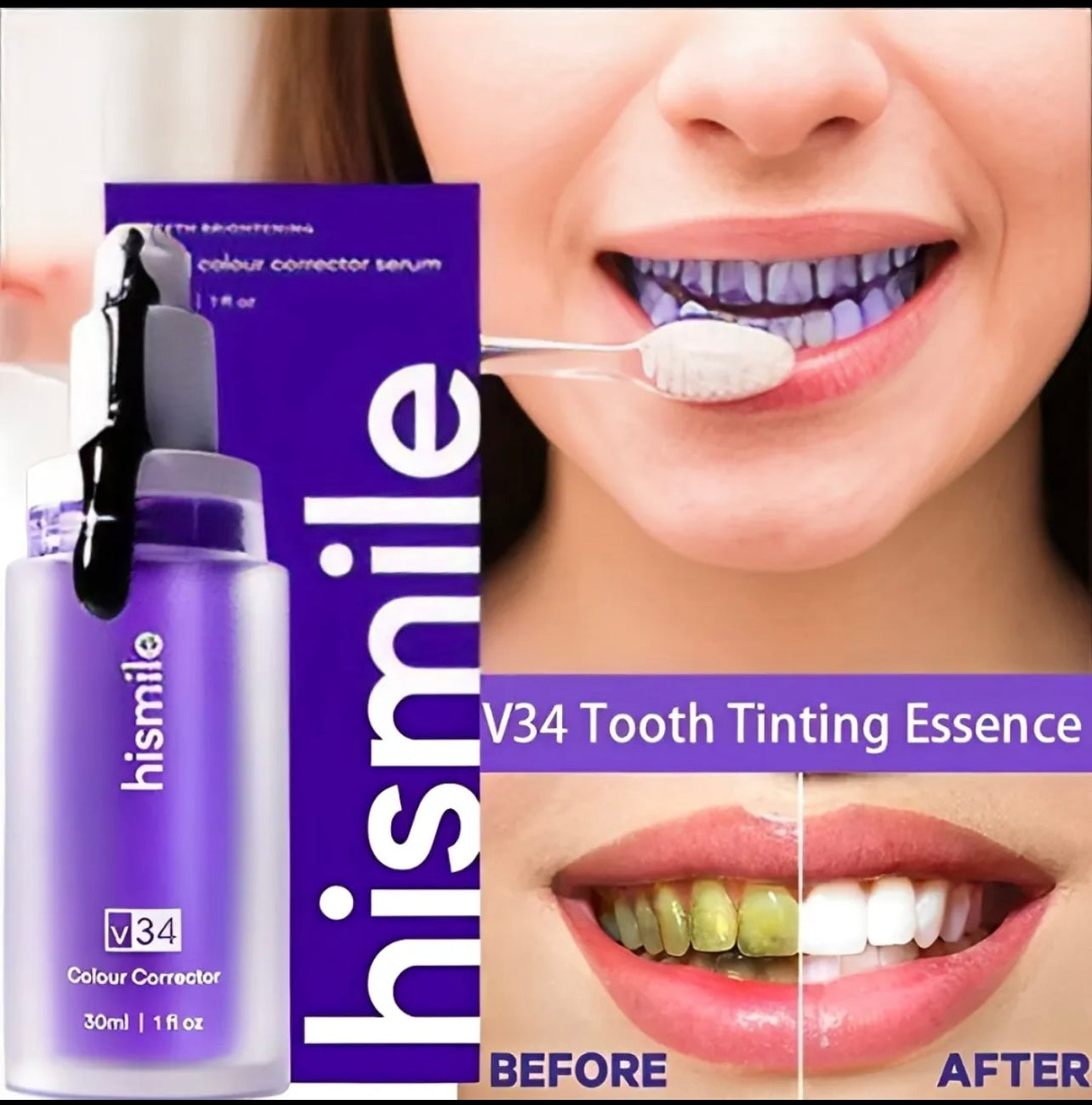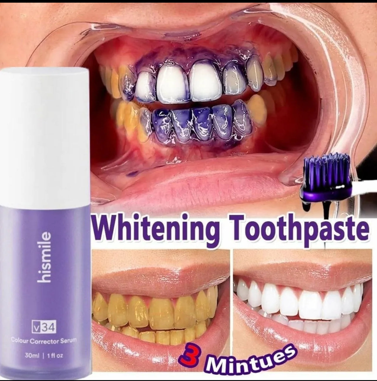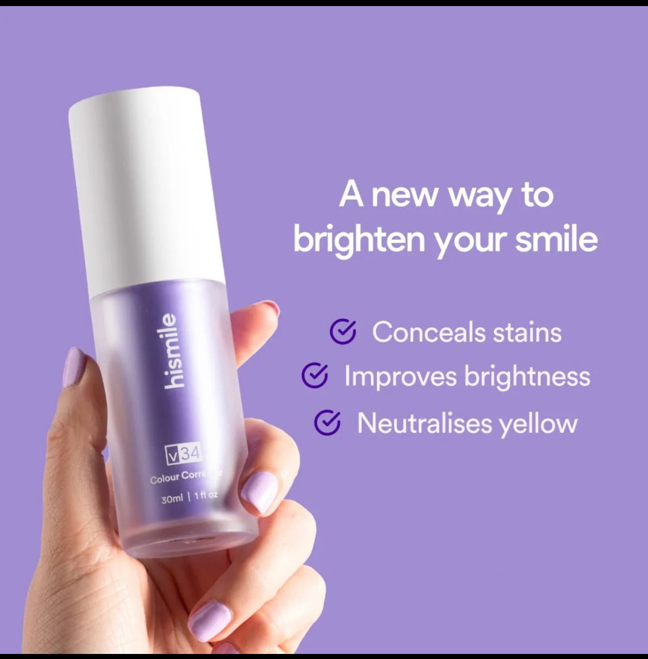 Instantly brightens teeth using color-correcting technology